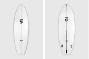 「マーク・リチャーズは、彼の象徴的なモデルである#SuperTwinに手を加え、モダンでユーザーフレンドリーな小波用の武器を作ることを僕に許してくれた。エントリーロッカーを劇的に下げ、ノーズとテールブロックを広げ、全体のアウトラインに数インチの幅を持たせた。デッキをフラットにすることで安定性を高めつつも、MRのクラシカルでスピーディーなダウンソフトレールとモダンなパフォーマンステイルロッカーはそのままに、正確なターンを可能にした。必要なところはフラットに、でも正しいところではカーヴィーに、そしてタイトなところでは滑りながらターンする。小回りが利き、リッピングもできるフィッシュだ」。