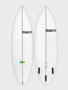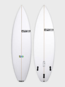 PYZELレンジ最高峰のハイパフォーマンスショートボード。スムーズで連続したミディアム〜ハイのボトムロッカーが素早いターンを可能にし、ボード全体を流れるシングルコンケーブがリフトとドライブを生み出す。アウトラインのテール付近にあるジェントルなヒップがルースさとシャープさを両立し、さらなるドライブも加える。